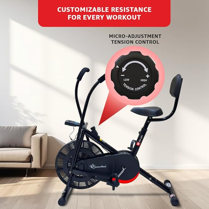 PowerMax Fitness BU-201 Dual Action Air Bike/Exercise Bike for Home